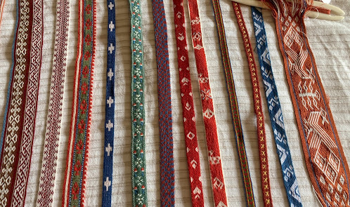 Es ist ein Köperband, das aber auch waagerechte Linien kann, das mit insgesamt 49 Musterbrettchen gewebt wird.