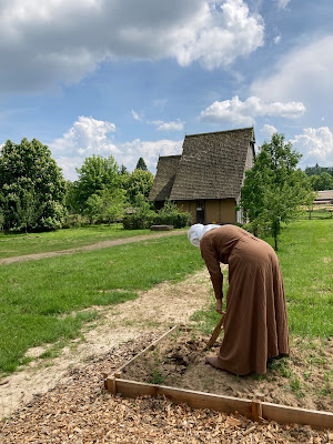 | Freitags konnten wir draußen sitzen und nähen. |